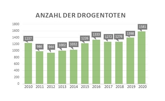 Im Jahr 2021 ist die Zahl der Drogentoden erneut gestiegen und wir mussten 1826 Verstorbene in Deutschland registrieren.