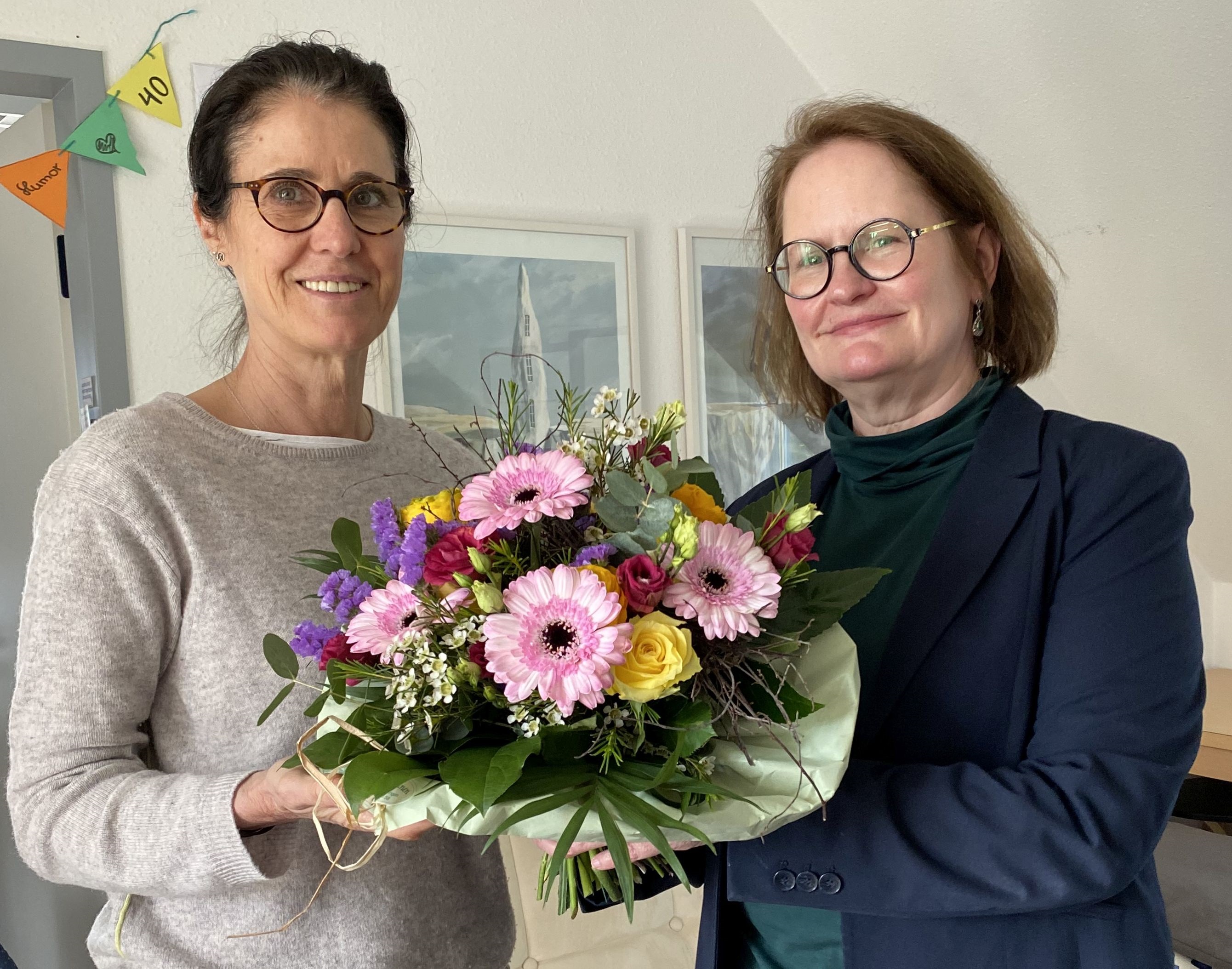 Ihr 40-jähriges Dienstjubiläum bei der AWO Hagen-Märkischer Kreis begeht Barbara Eichhorn (im Bild li. mit AWO-Geschäftsführerin Birgit Buchholz). Frau Eichhorn arbeitete im Jugendtreff Stennerstraße und auch im Familienzentrum Am Löbbeckenkopf. Sie hat die Kita Dürerstraße, die in diesem Jahr ihr 25-jähriges Bestehen feiert, mit eröffnet und ist inzwischen seit Jahren engagierte Leiterin der Iserlohner Einrichtung.