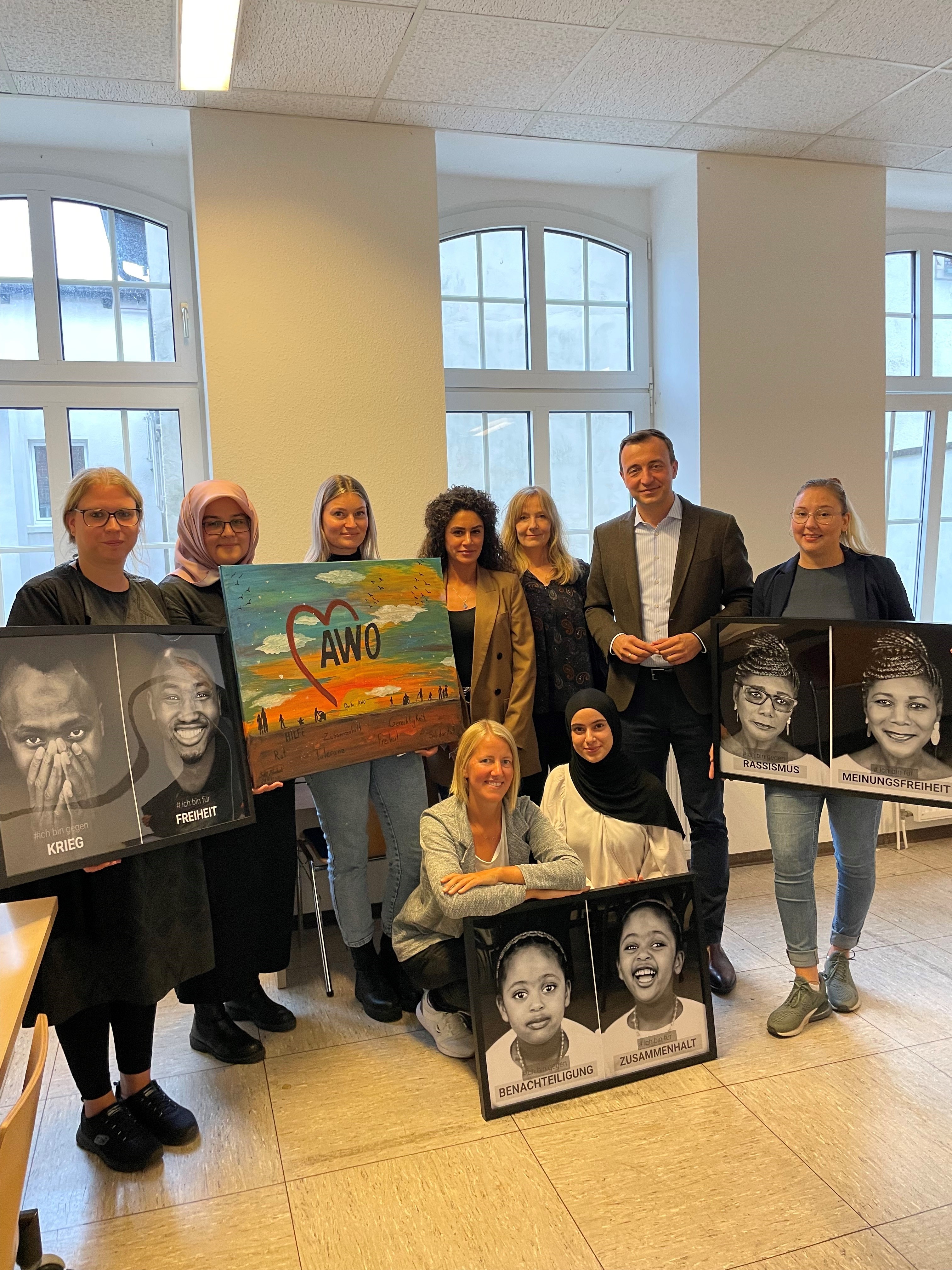 Ein wichtiges Thema für die AWO-Mitarbeitenden ist die angekündigte Kürzung der Beratungsangebote der MBE und der Respekt Coaches: Im Entwurf des Bundeshaushalts sind dafür statt aktuell 79,2 Millionen Euro nur 57,49 Millionen Euro für 2023 vorgesehen. Der Abgeordnete versprach, dieses Anliegen nach Berlin mitzunehmen. Paul Ziemiak, direkt gewählter MdB für den Wahlkreis Märkischer Kreis II, zeigte sich aufgeschlossen und interessiert an der Arbeit der AWO und erkannte auch Parallelen zu seiner eigenen Migrationserfahrung.