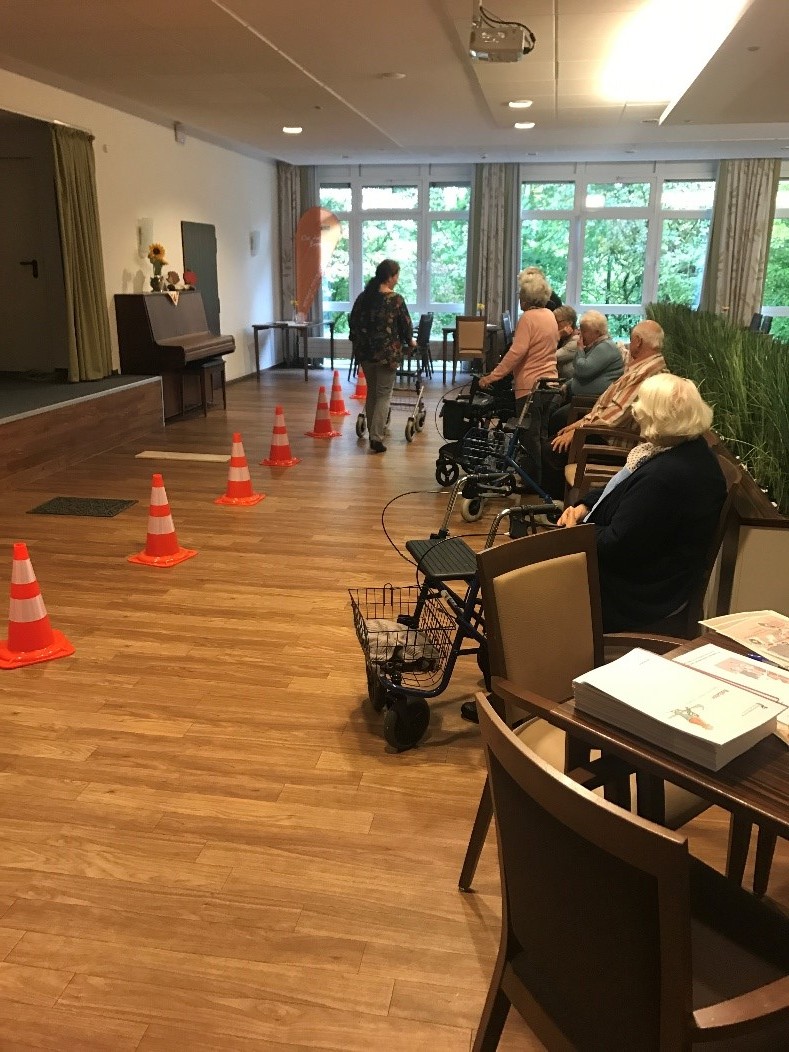 Nicht ganz ernst gemeint ist die Bezeichnung des abgenommenen Führerscheins zum Rollatoren-Führerschein. Aber der Inhalt ist um so ernster und wichtiger. Zur Vorbeugung von Stürzen und Verletzungen wird dieses Training Bewohner*innen und Interessierten im Helmut-Turck-Zentrum kostenlos angeboten. Die Nachfrage ist groß. Der jetzt am Donnerstag abgeschlossene Kurs hat dieses wieder deutlich zum Ausdruck gebracht. Ob das Laufen über Hindernisse, das richtige Bremsen oder die Einstellungen des Hilfsmittels, alles das ist Inhalt dieses Trainings. Durchgeführt wird dieses Training selbstverständlich über eine Fachkraft, welche darüber hinaus gute Tipps zur Handhabung des Rollators im Allgemeine geben kann. Als Abschluss wird ein Zeitifikat bzw. ein Rollator-Führerschein als Teilnahmenachweis ausgehändigt. Alle Teilnehmer*innen waren sehr zufrieden mit dem Training und würden dieses auch gerne zu einem späteren Zeitpunkt nochmals wiederholen.