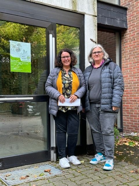 Foto: Die städtische Sozialplanerin Elke Narodone und Nicole Neises-Weiler, Bereichsleiterin Kinder, Jugend und Familie der AWO Unterbezirk Hagen - Märkischer Kreis (v.l.) freuen sich, dass das Brieföffner-Projekt im Stadtteil Löbbeckenkopf gut ankommt.