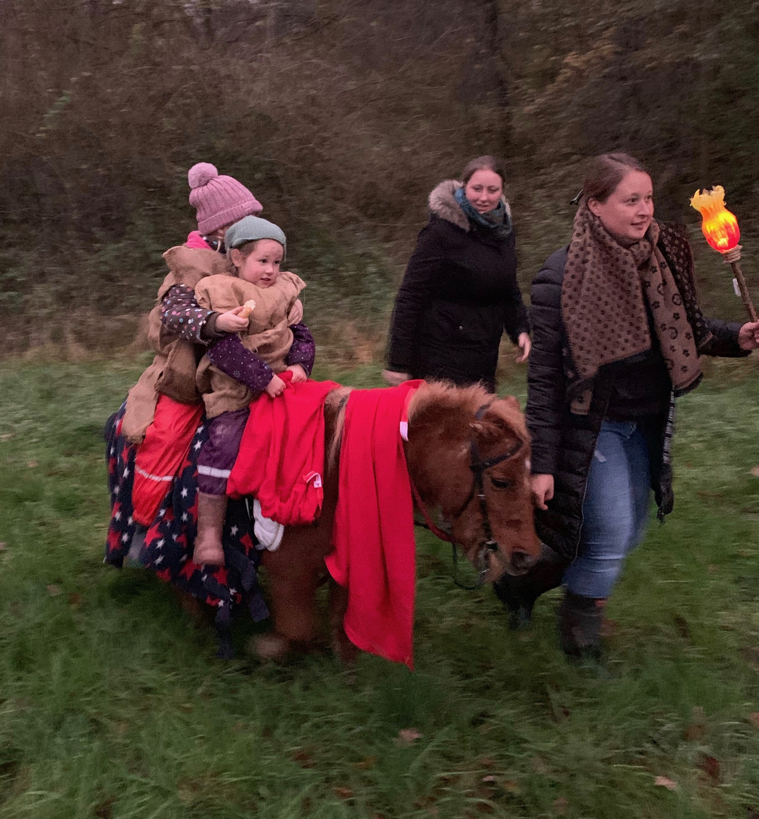In der Dämmerung konnten wir unsere Bettler und ihren Retter Sankt Martin bei der Mantelteilung