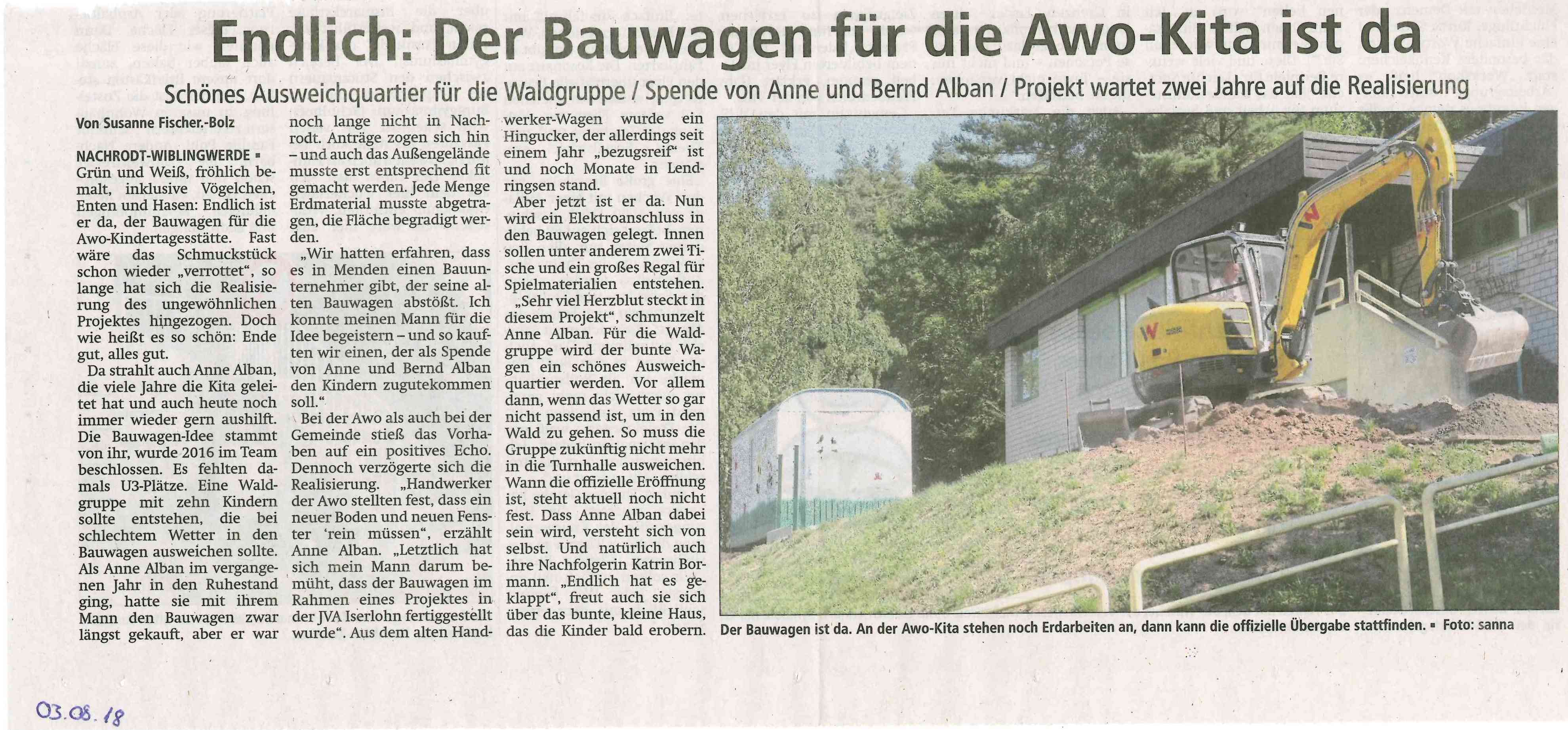 Pressebericht Altenaer Kreisanzeiger vom 03.08.18