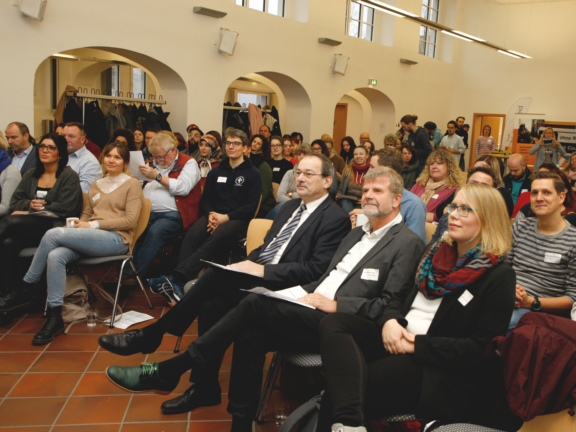 Meinolf Remmert, Leiter der AWO Integrationsagentur, stellte in seinem Grußwort eine hohe mediale und gesellschaftliche Aufmerksamkeit auf das Thema Migration fest und warnte vor Verallgemeinerungen. Auch mahnte er eine sprachliche Achtsamkeit an. So monierte er beispielsweise die Verknüpfung des Begriffs „Flüchtling“ mit der Naturgewalt „Flut“ oder „Welle“, die unhinterfragt Ängste und negative Assoziationen schürt. In der Auseinandersetzung mit Migration und Integration wünschte er sich, den Fokus mehr auf das Verbindende zu legen. Dann ließe sich auch das Trennende eher akzeptieren. Wichtig sei es jedoch einen gemeinsamen kulturellen, sozialen und politischen Nenner zu definieren.