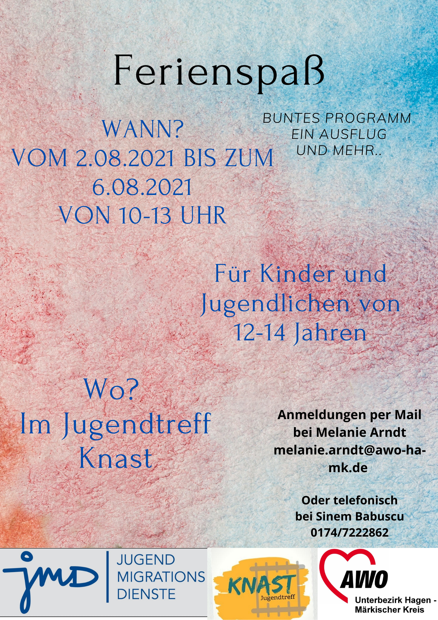 27.07.2021Wir haben noch freie Plätze für unseren Ferienspaß! Das Angebot richtet sich an Jugendliche zwischen 12 und 14 Jahren und ist kostenlos.