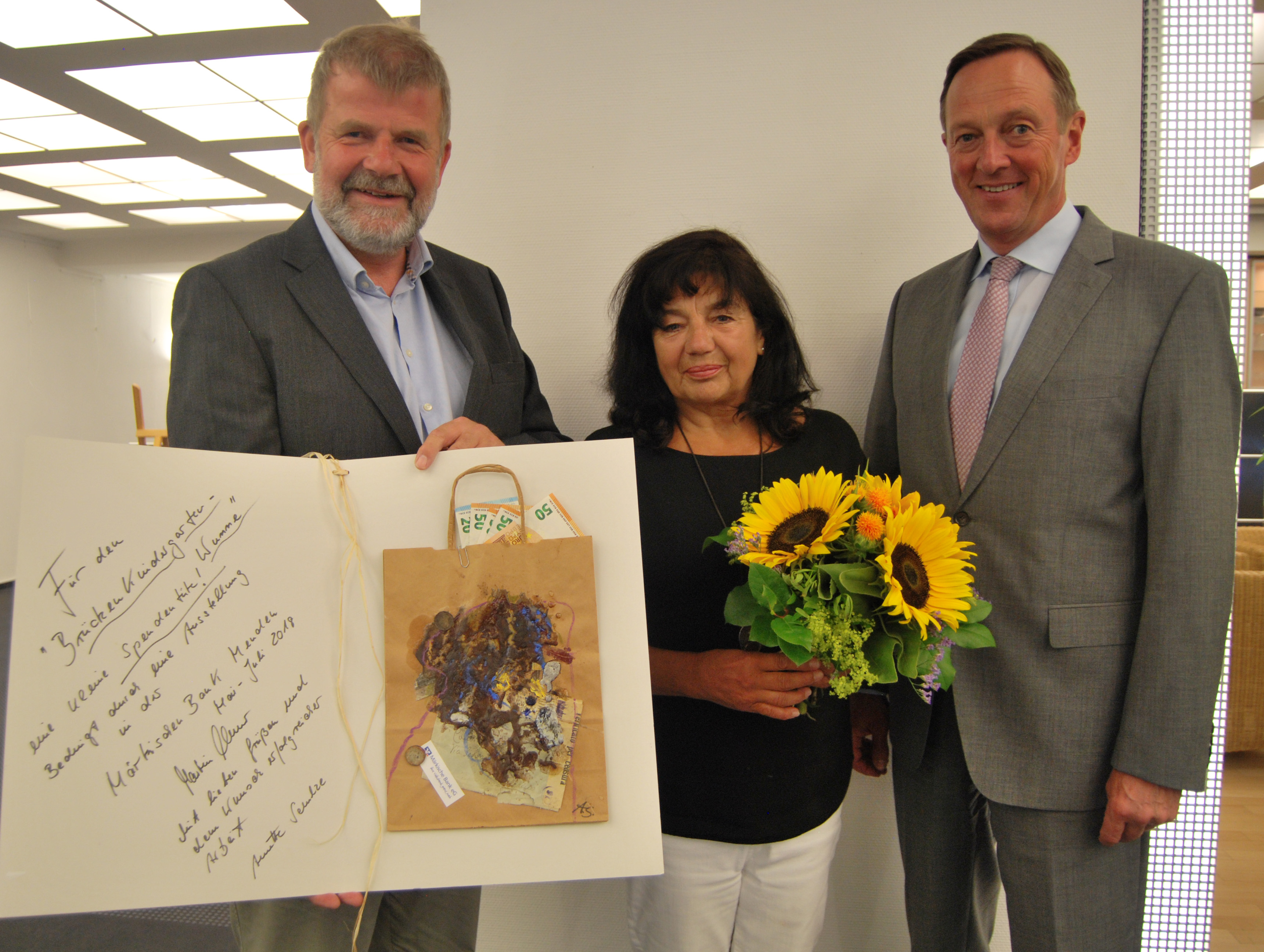 Annette Schulze, Künstlerin aus Hagen, überreichte diesen zusammen mit dem Direktor der Märkischen Bank in Menden, Martin Weber, Anfang Juli.