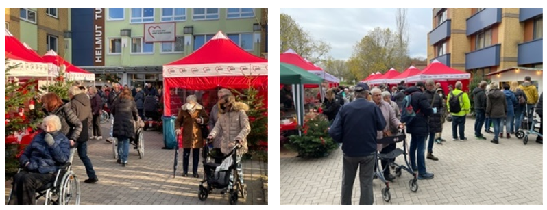 Der Advents- und Weihnachtsmarkt am vergangenen Samstag am Helmut-Turck-Zentrum war ein riesiger Erfolg. Wie bestellt wurde der kalte trübe Vormittag zu einem fast schon sonnigen Nachmittag und somit war der winterliche Rahmen erfüllt. Mit großem Andrang ging es in der Mittagszeit zu den Verkaufsständen. Mit Reibekuchen, Champignonpfanne und vielen anderen Köstlichkeiten wurde für das leibliche Wohl bestens gesorgt. Auch die Verkaufsstände mit allerlei Handgebastelten sorgten bei den Besuchenden für reges Interesse.