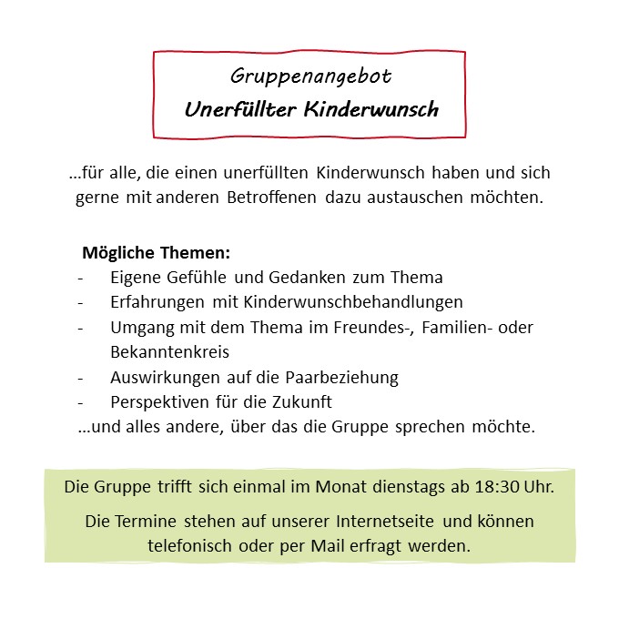 Für alle, die einen unerfüllten Kinderwunsch haben und sich gerne mit anderen Betroffenen dazu austauschen möchten.