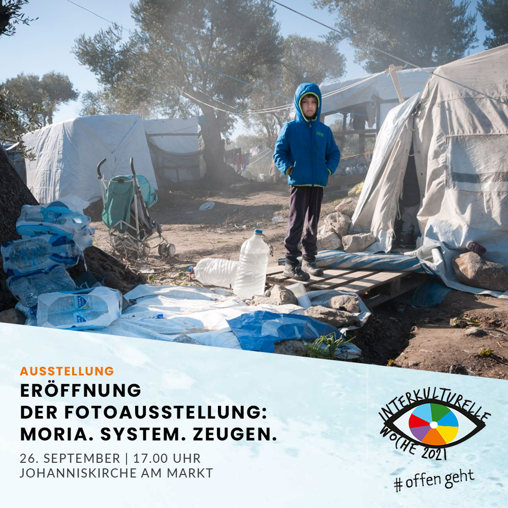 Am 26.09. eröffnen wir die Interkulturelle Woche in Hagen mit der Fotoausstellung „Moria. System. Zeugen. Flüchtlinge, Einheimische und Helfer in Zeitzeugenbegegnungen“.