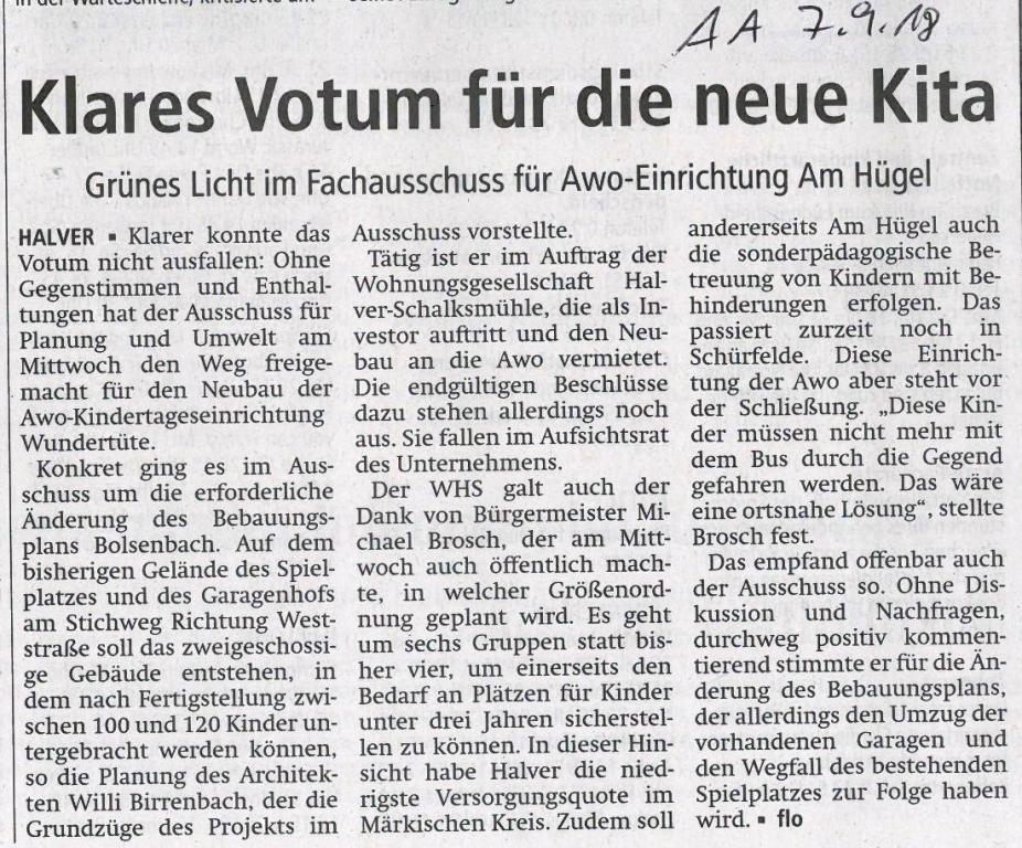 Pressebericht Allgemeiner Anzeiger Halver vom 07.09.18