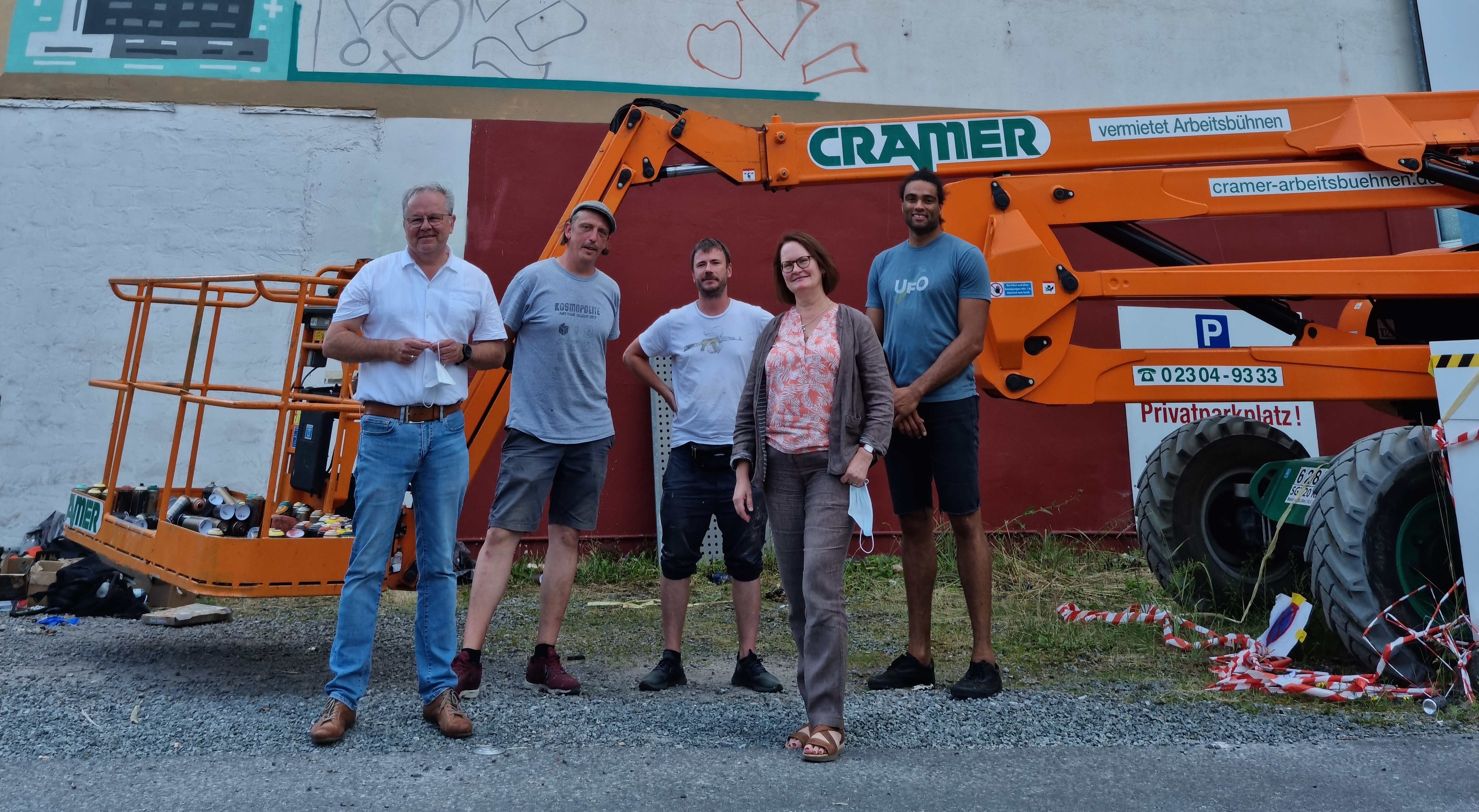 Am vergangenen Freitag haben sich Javon Baumann, Initiator des Hagen Mural Projekt, AWO Unterbezirksvorsitzender Wolfgang Jörg und Geschäftsführerin Birgit Buchholz persönlich ein Bild vom Ergebnis gemacht und sich bei allen Beteiligten bedankten.