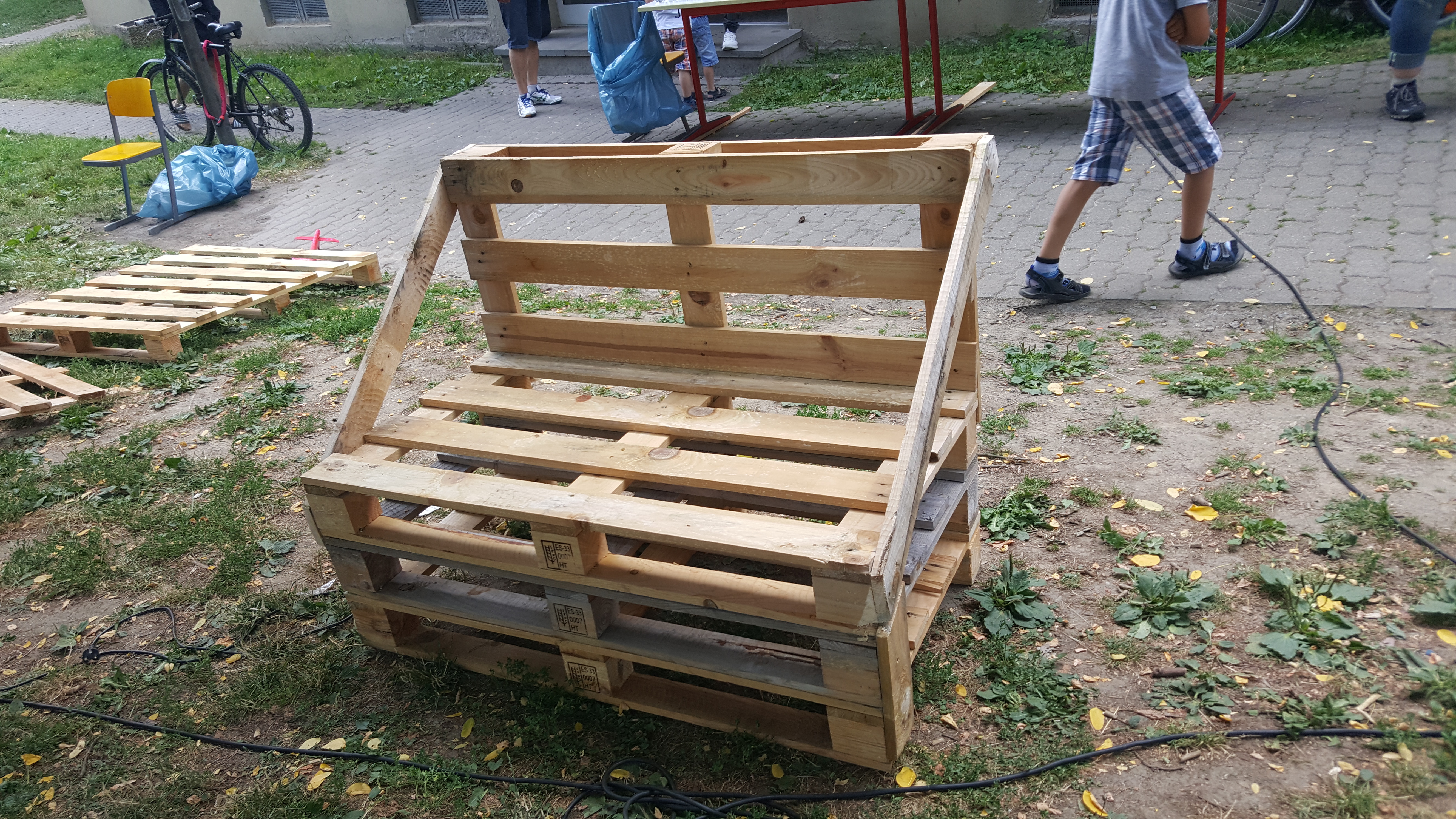 Am Samstag 20.7. war ein besonderer Tag in der Flüchtlingsunterkunft „Wunne“ in Menden. Die rund 142 Flüchtlinge, die in fünf Mietwohnhäusern in der „Wunne“ leben, konnten an dem Tag hämmern, bohren, sägen und sogar malen, denn aus gespendeten Paletten haben die Bewohner zehn Bänke zum Sitzen und drei Tische in unterschiedlichen Variationen gezaubert.