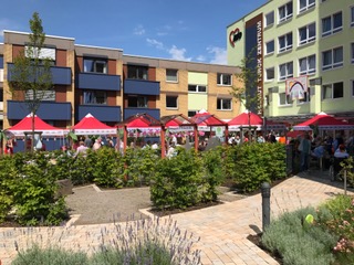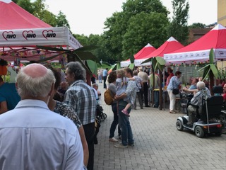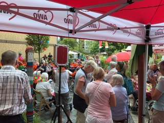 Zum erste Mal wurde die Gartenanlage des Hause s für einen Kinderbereich umfunktioniert. Eine Hüpfburg gab dazu Gelegenheit, dass die Kleinen sich richtig austoben konnten. Nach erfolgreichen Abschluss eines Kinderparcours gab es eine Urkunde. Besonders gefreut hat es die Bewohner. die sich die Geschicklichkeiten der Kinder gerne anschauten. Der Tag wurde durch Clownerie und einer Hula-Hop Vorführung zusätzlich aufgelockert. Eine Tombola sorgte für die notwendige Spannjung durch den Hauptpreis einer attraktiven Gartenbank. Den musikalischen Rahmen übernahm DJ Drafi, der in ganz besonderer Weise den musikalischen Nerv der Besucher und Bewohner traf, die irgendwann gemeinsam anfingen auf dem Gelände zu tanzen.