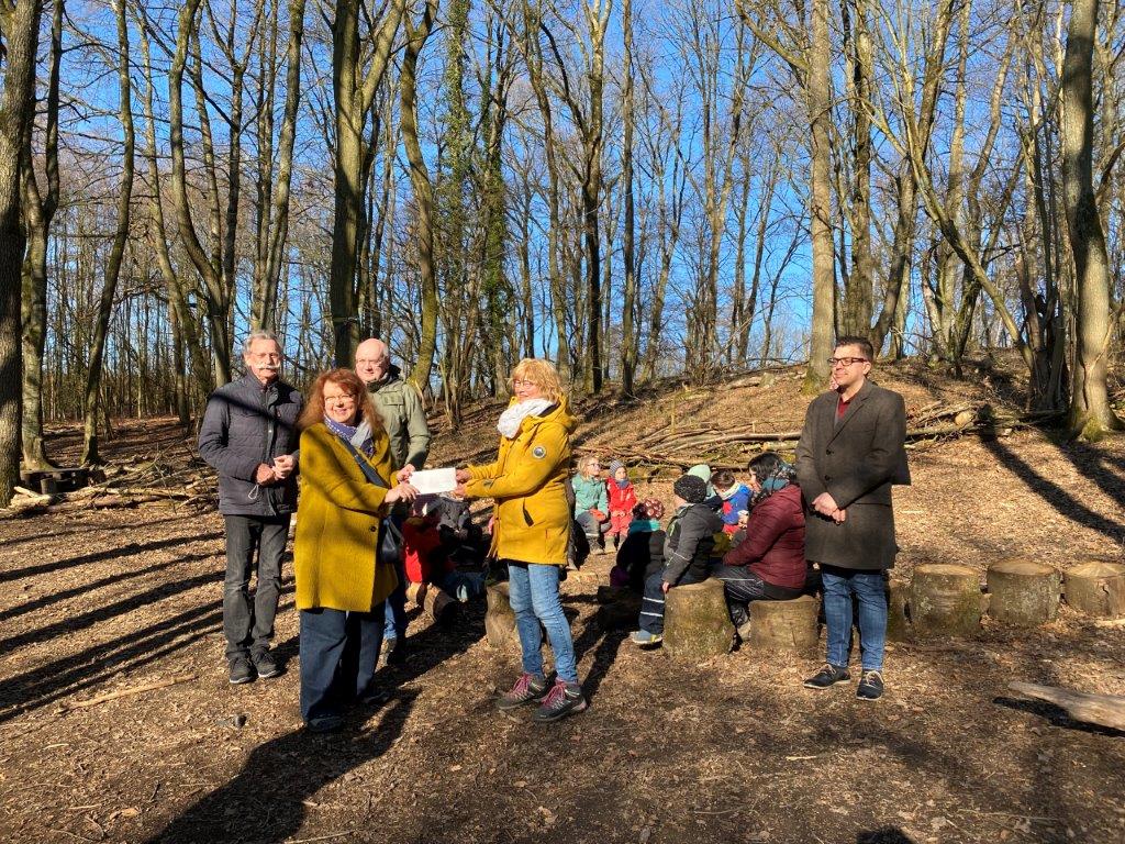 Marike Kesper-Vekens, Leiterin der Kindertagesstätte, bedankte sich besonders im Namen der Kinder. Nicht nur der Vandalismusschaden kann mit dem Geld behoben werden, sondern es ist darüber hinaus geplant mit den Kindern Bienenhotels im Wald zu bauen und aufzuhängen. Auch möchte die Gruppe eine Imkerin in der Nachbarschaft besuchen, um mehr über Bienen zu erfahren.