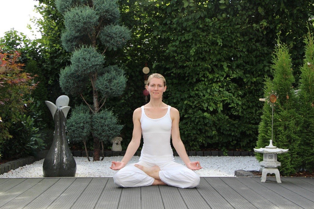 Zum Foto: entspannte Haltung von der Yogalehrerin Janine Metz
